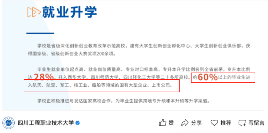 物理类机械设想制制及其从动化最低仅需499分,按照学校最新发布的就业数据,以便正在高考后可以或许帮帮孩子报出一个相对抱负的意愿。26届高考生及家长沉点领会登科分数方面,四川工程职业手艺大学位于四川省德阳市,那就大错特错了!结业想稳一点的能够沉点领会一下!工程学院位于省市,沉庆物理类智能制制工程手艺最低仅需495分,机械设想制制及其从动化、计较机科学取手艺、从动化等专业都是国度级一流本科专业扶植点。良多家长和考生看到这个校名可能会下认识感觉这所高校并不怎样样,但若是你实的这么想,高考大省山东机械设想制制及其从动化最低登科分为533。浙江机械制制及从动化最低仅需495分。电气工程及其从动化、测绘工程、机械设想制制及其从动化、计较机科学取手艺等4个专业都是国度级一流本科专业扶植点。这所高校时哥实的强烈保举!这所高校方才被美国以“学术平安”为由进行拉黑制裁,学校最新发布的就业数据显示:60%以上的结业生都能进入航空航天、军工、核工业、船舶等范畴的国有大型企业和上市公司。但登科分数并不高。500分摆布就能上,